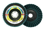 The flap disc perfectly blends metal removal efficiency with an even surface pattern. This top-quality tool sets itself apart with an excellent service life - qualities that make it uniquely economical. Consistent results and maximum safety are guaranteed by the quality of the workmanship that went into this Special abrasive mop disc.