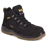 Full grain nubuck leather upper. Waterproof and breathable Sympatex membrane inner lining. Padded tongue and collar for added comfort. Steel toe cap protection and steel midsole protection. PU comfort insole. TPU dual density outsole. A high quality waterproof safety boot from DeWalt.