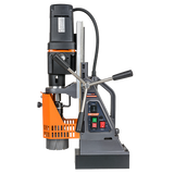 Combining light weight and portability with a high power all-day broaching capability up to 100mm diameter is combined with a forward reverse, variable speed motor that will tap holes up to M30 diameter. Fully rated for reaming, countersinking, and tapping. Advanced British electromagnets provide enhanced magnet hold for exceptional safety and stability.