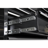 • All drawers have full width sand blasted aluminium 'Lift & Latch' drawer pulls, making easy-access while preventing inadvertent opening when box is being moved.