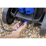 Features two pumps and twin nozzle for up to 70% faster cleaning. Eco Soft cleaning mode only activates one pump for light use. Fast cleaning mode activates both pumps together and, with the twin flow nozzle, gets rid of the toughest dirt and stains. Quick release nozzle system allows fast selection between single or twin nozzle. Fitted with two 1250W motors with total 810L/hr water flow rate and a maximum pressure output of 150bar. Features Automatic Total Stop System (TSS) which switches the motor on and off when the trigger is operated, prolonging motor life. Supplied with 8m high pressure hose and reel, detergent bottle, 5m power cable and heavy-duty wheels.