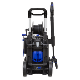 • Supplied with 8m high pressure hose and reel, detergent bottle and heavy-duty wheels.