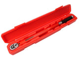 This Teng Tools torque wrench is manufactured according to DIN3122 standards. With a ratchet head, the torque wrench can be used for both tightening and final checking of the torque. The wrench is equipped with an angular gauge for after tightening. It is graduated in both Nm and ft.lb, and has a degree scale for after tightening of cylinder heads.