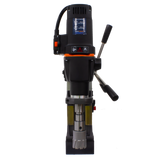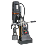 Combining light weight and portability with a high power all-day broaching capability up to 100mm diameter is combined with a forward reverse, variable speed motor that will tap holes up to M30 diameter. Fully rated for reaming, countersinking, and tapping. Advanced British electromagnets provide enhanced magnet hold for exceptional safety and stability.