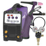 This is the XTM 161i-p2 Machine, Eco-Grip Max 150A Air Cooled MIG Torch, PRO17-12S1MPG/RTW TIG Torch and Gas Regulator.