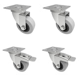4-piece castor packs containing 2 x swivel and 2 x Swivel braked pressed steel zinc plated, top plate castors. Fitted with a heavy-duty black rubber tyre wheel on a steel rim.