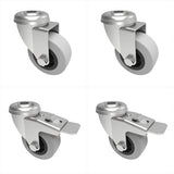 4-piece castor packs containing 2 x swivel and 2 x swivel with brake, pressed steel zinc plated, bolt hole castors. Fitted with a non-marking grey thermoplastic rubber tyre wheel on a grey polypropylene rim.