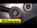 The SMT 850 plus Special is the unbeatable expert in the field of removing and finishing TIG weld seams. The special Combi-Abrasive mop disc version turns this mop disc into a highly efficient tool as it allows the user to complete stock removal and finish in one swift work step. Its field of application is stainless steel. Engineered specifically for professional users, the SMT 850 plus Special is used wherever the finishing of weld seams is required after TIG welding, such as in metal-processing workshops, after welding on tubing or in apparatus and plant engineering. The high quality processing of the flap disc guarantees ultimate safety and uniform results throughout the lifetime of the product.