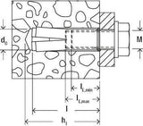 - Fixing point at hef 25 mm prevents anchor of falling out of the drill hole before being expanded.
