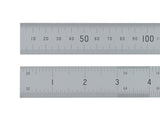 Fisher steel rule with satin chrome finish and photo etched markings. These double-sided rules feature both metric and imperial graduations. They come with a handy hanging hole and are supplied in a protective sleeve.