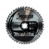 The Makita B-64630 260x30mm 45T Efficut Circular Saw Blade is specifically designed to provide better efficiency when cutting wood using a cordless circular saw. These blades can provide up to 1.5x the cutting amount per battery charge and cutting speed over the previous model B-08981 blade.