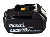 Li-ion battery with 5,0 Ah capacity and a charge level indicator. Powerful general-use battery for 18V Makita LXT® tools. Ideal for tools with a high power consumption. Charge time approximately 45 minutes with a rapid charger.