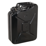 Black jerry can with 20L capacity manufactured from 0.9mm pickled steel sheet with fuel resistant lining.